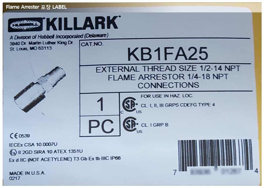 동양피엔에프, IBN SINA POM 프로젝트, Killark사 Flame Arrester 페이지 정보 작성자 관리자 작성일17-03-03 15:29 조회12,283회 댓글0건 관련링크 이전글 다음글 목록 본문 공급품목 : Killark Flame Arrester상세사양 : KB1FA25 모델 댓글목록 등록된 댓글이 없습니다. 이전글 다음글 목록